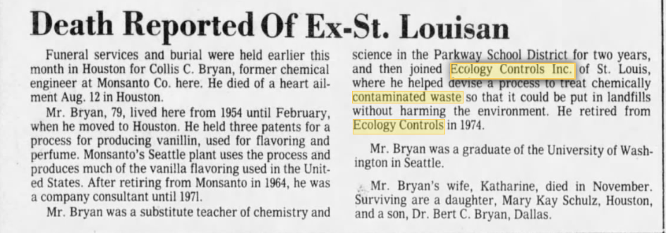 When informed that the company was still on the St. Louis County property tax rolls, Huger expressed surprise and attributed it to governmental error.  “I think we sold all that and they don’t have the records right. I don’t know. But that’s a long time ago. I think it’s all long since been sold.”